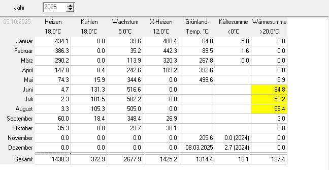Immer aktuell unter Gradtage 2025 |