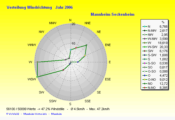 Die Durchschnittstemperatur für das Jahr 2006 lag bei 11.79°C. Die Abweichung vom langjährigen Mittel war +1.59°C.