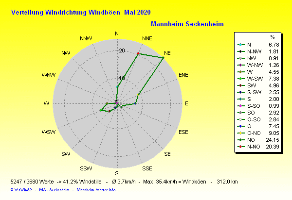 Der wärmste Tag war der 21.05.2020 um 15:50 mit 28.5°C. Am kältesten war es mit 1.9°C am 12.05.2020 um 06:10.